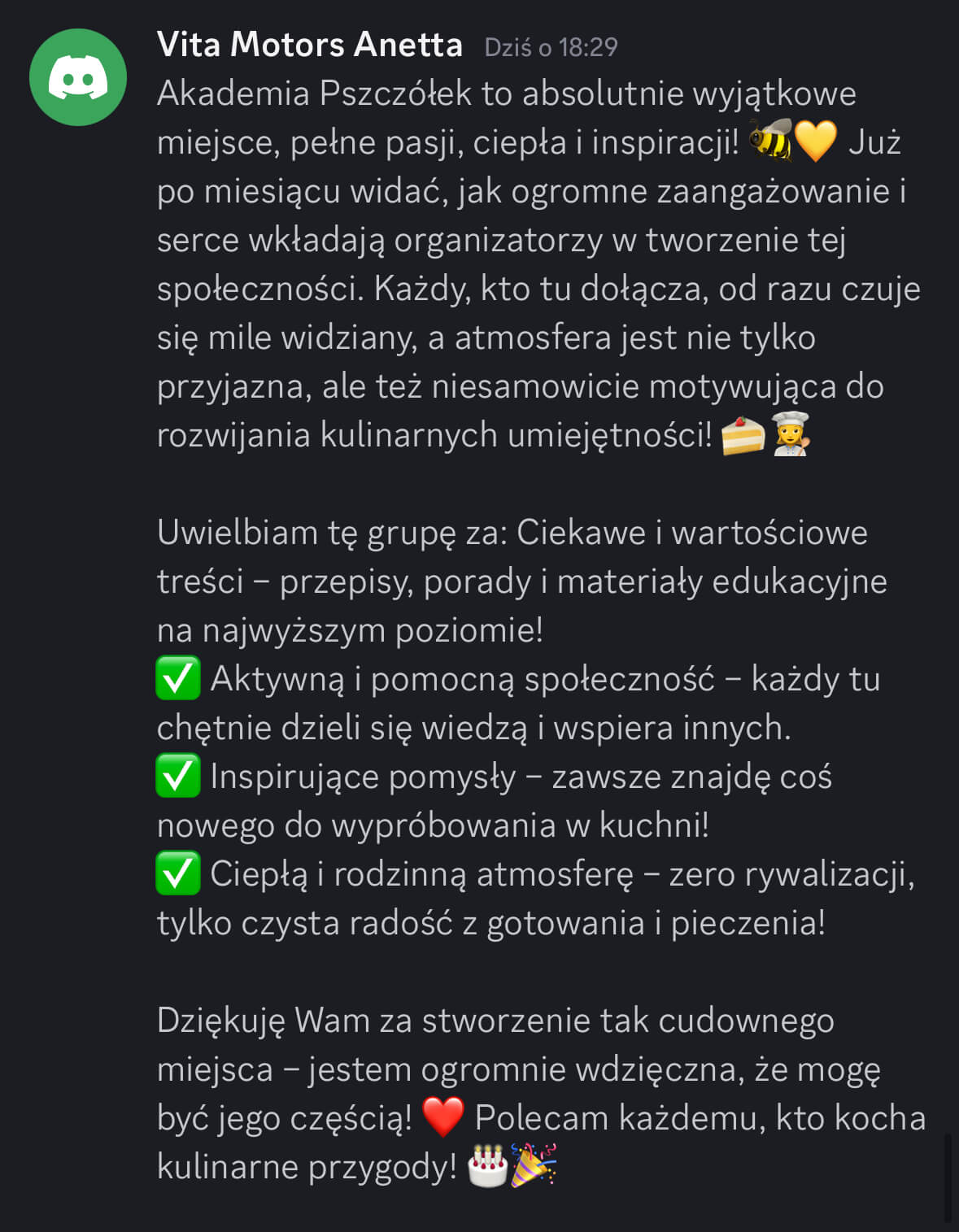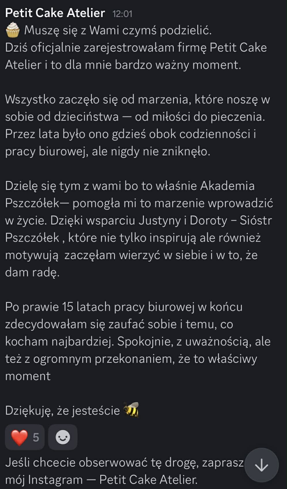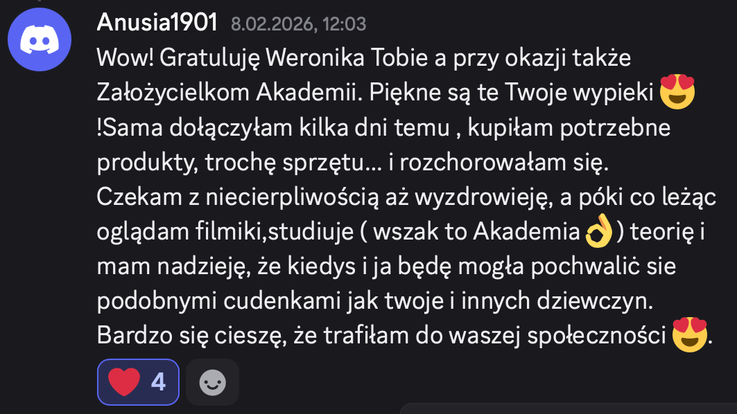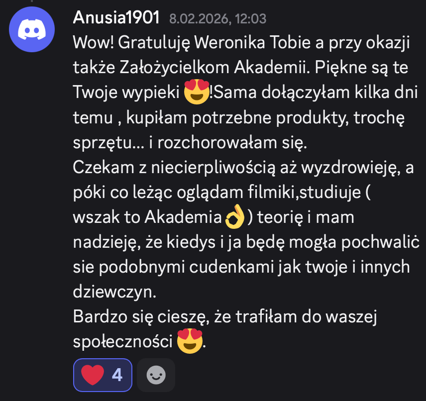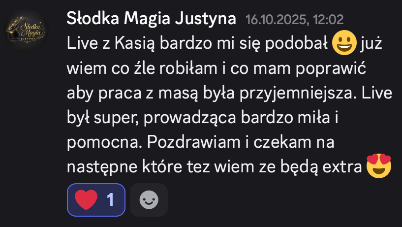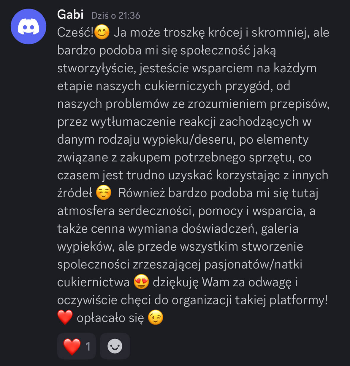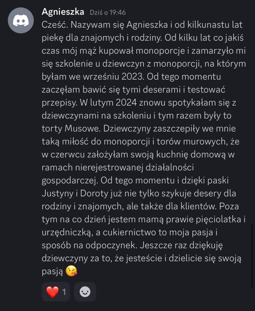Jej wypieki zachwycają i jak sama twierdzi: "Dałyście mi takiego kopa i wiarę w siebie, że założyłam WŁASNY BIZNES [...] za wszystko dziękuję!"