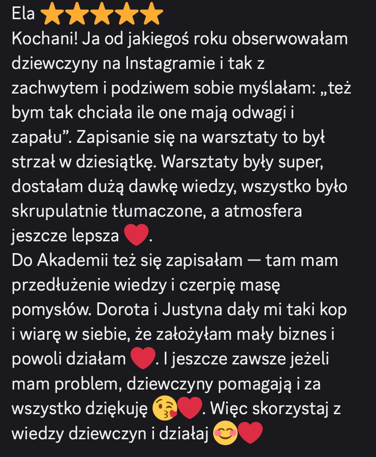 Najlepsi uczestnicy ze wszystkich wyzwań mają dodatkowo szansę wziąć udział w darmowym szkoleniu stacjonarnym w Katowicach z nami - siostrami Pszczółkami.