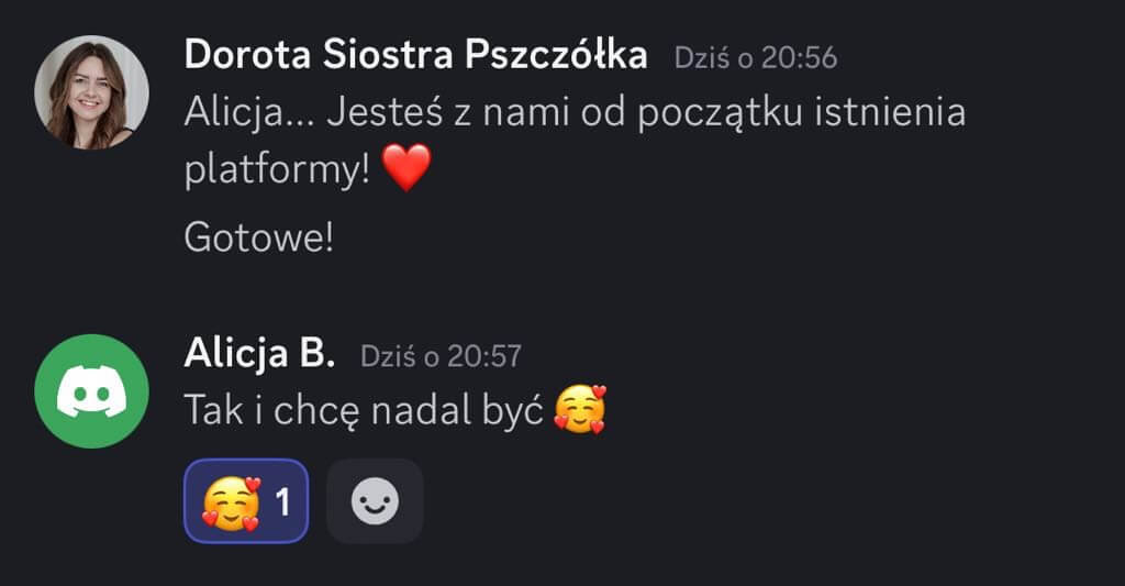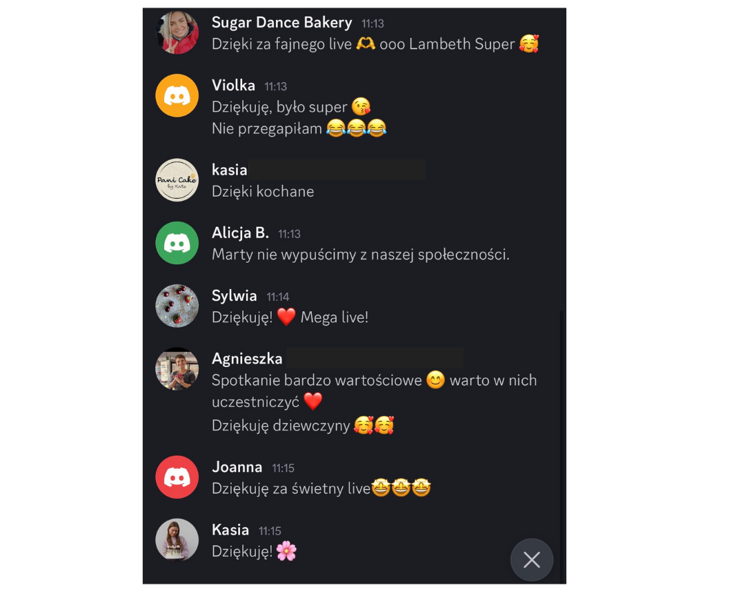 W trakcie wyzwania na Discordzie (zamkniętej społeczności Akademii) odbywa się live z ekspertem — najczęściej z osobą, która poprowadziła kursy na platformie, albo innym specjalistą, który zna temat konkretnego wyzwania i odpowiada na Twoje pytania na żywo.