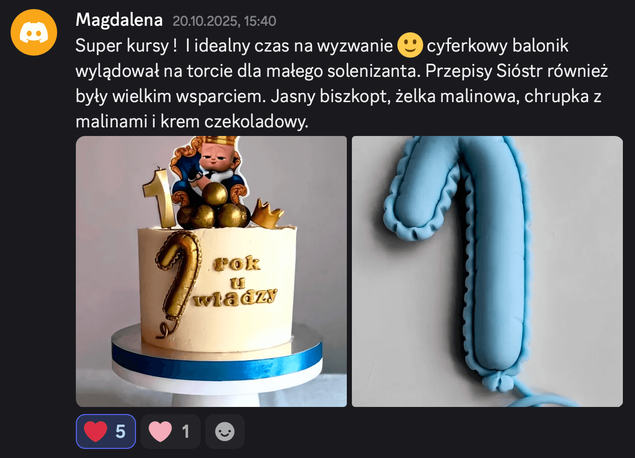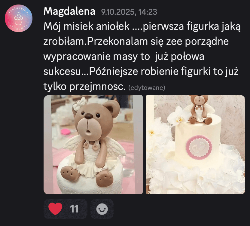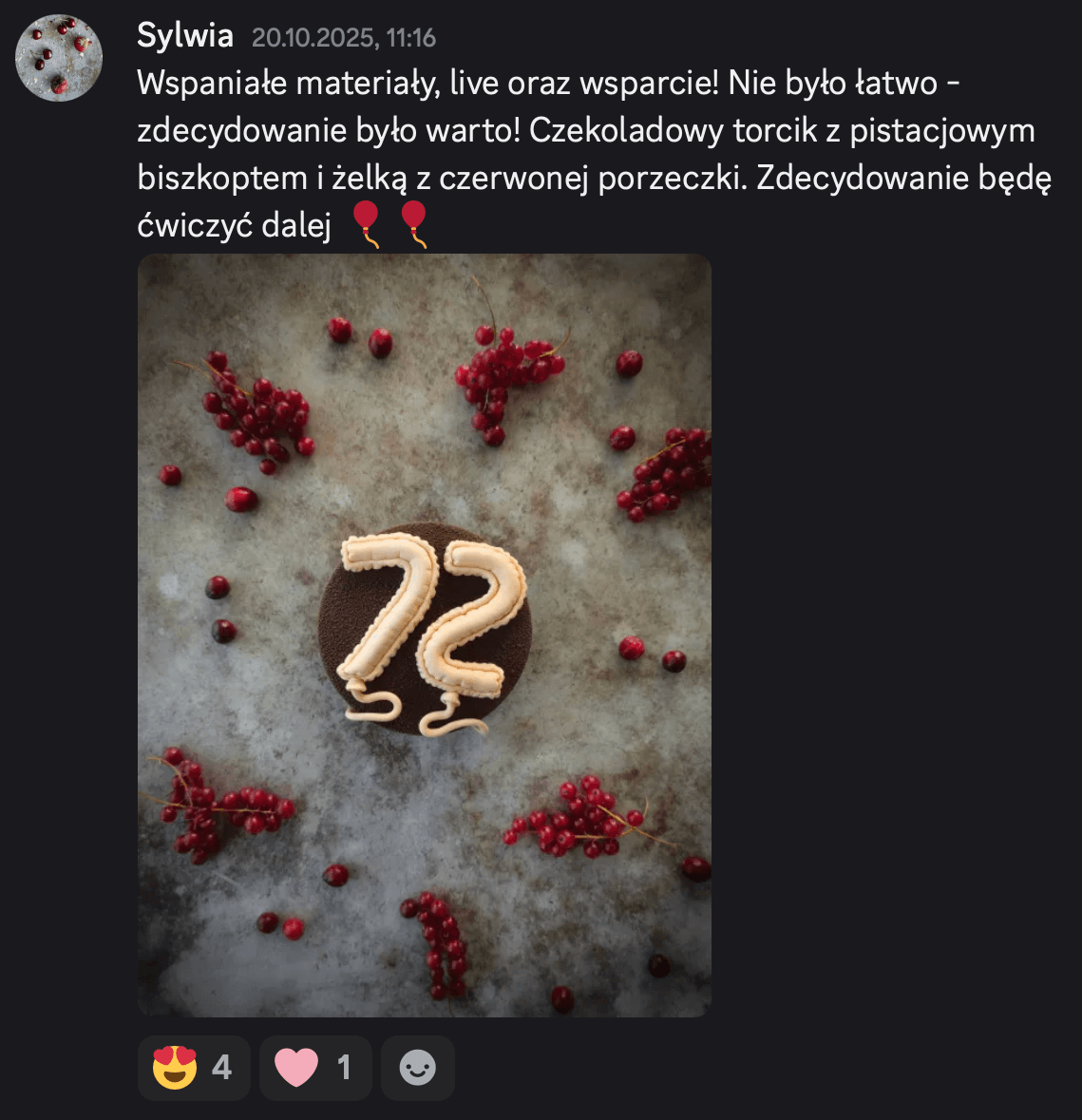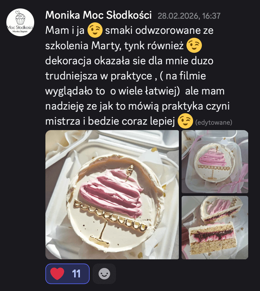 Tak, na platformie masz dostęp do zamkniętej społeczności, gdzie możesz zadawać pytania innym członkom, trenerom cukierniczym oraz ekspertom.