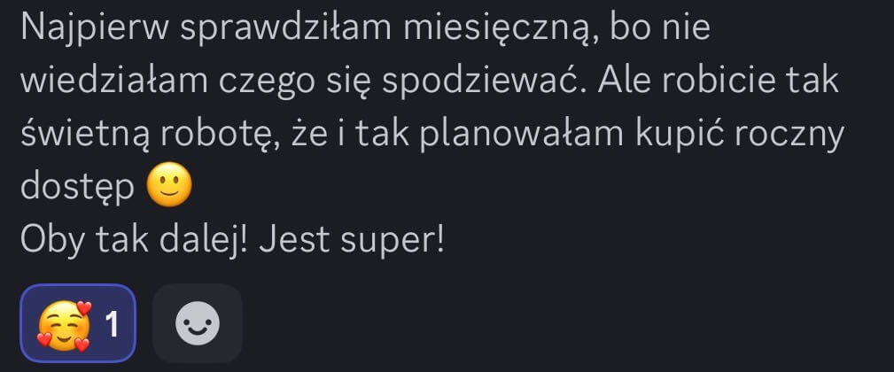 Poza kursami i wyzwaniami otrzymasz również dostęp do tematycznych live’ów oraz społeczności Akademii, która wspiera rozwój, wymianę doświadczeń i realny progres.